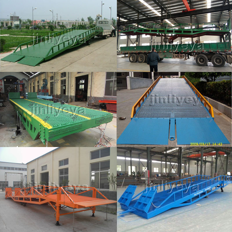 移動式登車橋是固定式登車橋的姊妹産品,它主要應用在車站、碼頭、工廠倉庫等貨運量大,但又不方便做貨台的場所,能夠在地面和運輸車輛之間搭起一座橋,使叉車使得地行駛,達到裝卸貨目的,該設備一端與地面接觸,另一端搭接在車廂後緣上,並(bìng)能根據不同車型及裝車過程中車廂的變化,自動調整高度,從而大大提高工作效率。主體部分採用矩形管焊接而成,強度高,承載能力大;液壓系統採用進口手壓泵,安全耐用;橋面採用高強度鋼闆網,增加瞭(le)磨擦系數,便於叉車的行駛,減輕瞭(le)橋體的自身重量,使移動更加靈活。
