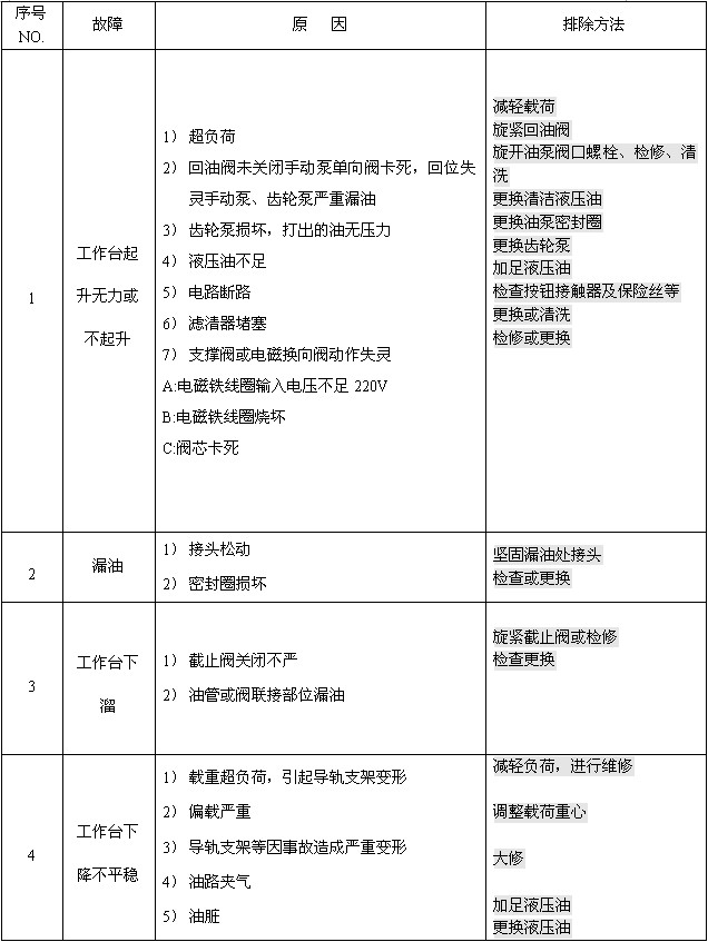 2、貨梯在使用前要認真檢查液壓、電器系統無滲漏或裸露現象後方可使用。